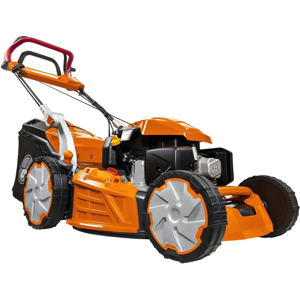 • Kosiarki te wyposażone są w większe koła na tylnej osi, które ułatwiają manewrowanie kosiarką, również na bardziej nierównym terenie